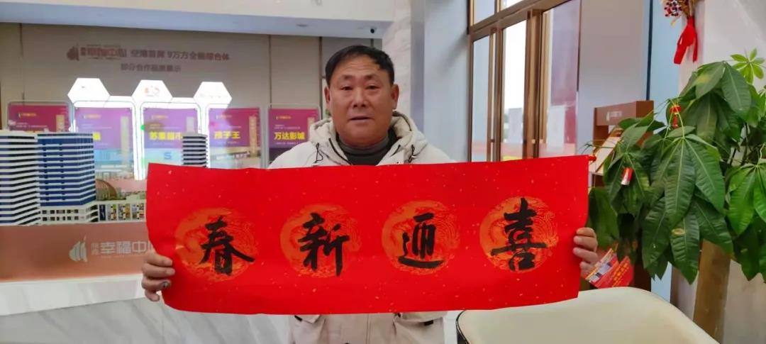 “千家萬戶曈曈日,總把新桃換舊符”。春節(jié)將至,寫春聯(lián)、貼春聯(lián)是中國人過年的傳統(tǒng)習(xí)俗,象征著喜慶、吉祥和幸福,也寄托了人們對新的一年的美好祝福。無聯(lián)不成春,有聯(lián)春更濃。今天,我們的老朋友書法協(xié)議副秘書長—王從全老師如約再度蒞臨售樓處,揮毫潑墨,手書新春對聯(lián)贈送給鼎鑫的新老業(yè)主,齊歡中國年。