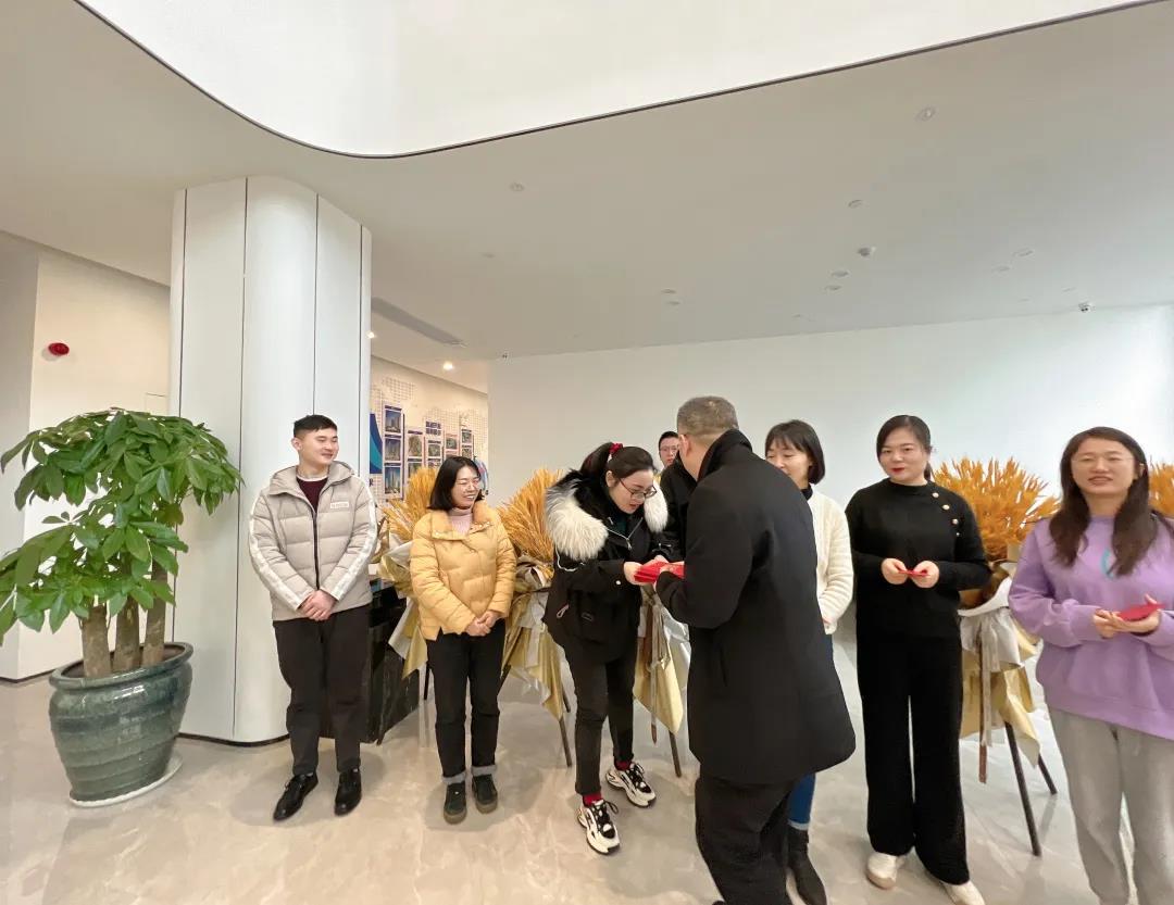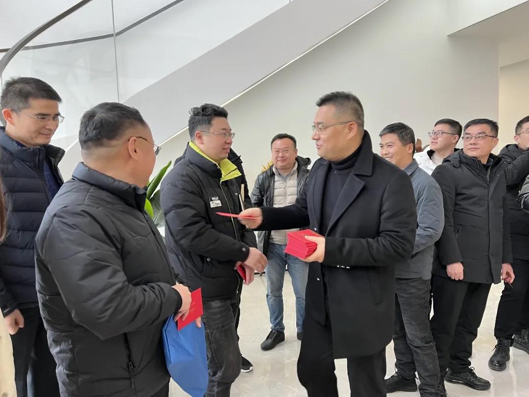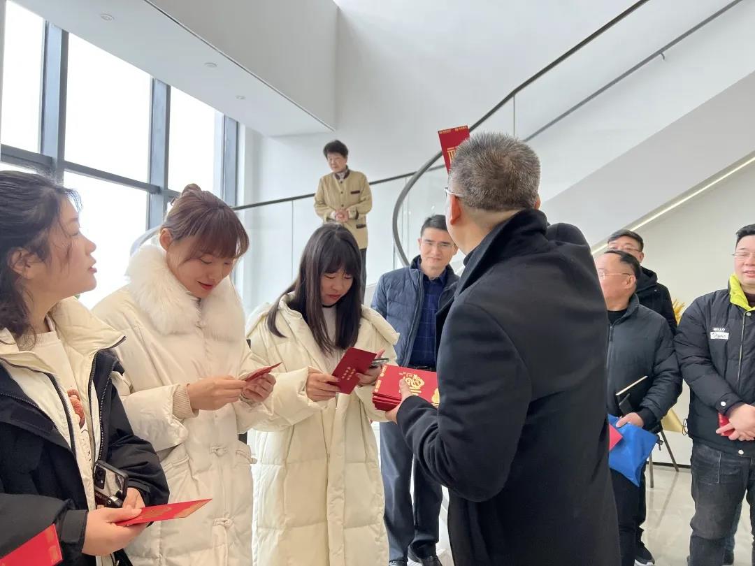 虎年開工日,全體鼎鑫人準時到崗,伴隨著此起彼伏的新年祝福,全體員工以“元氣滿滿”的姿態進入工作狀態,董事長鄭景利親自為每一位員工送上開工紅包,寓意新的一年紅紅火火,萬事順利,一個個紅彤彤的紅包,寄托了董事長對每個人的美好祝福和殷切希望。