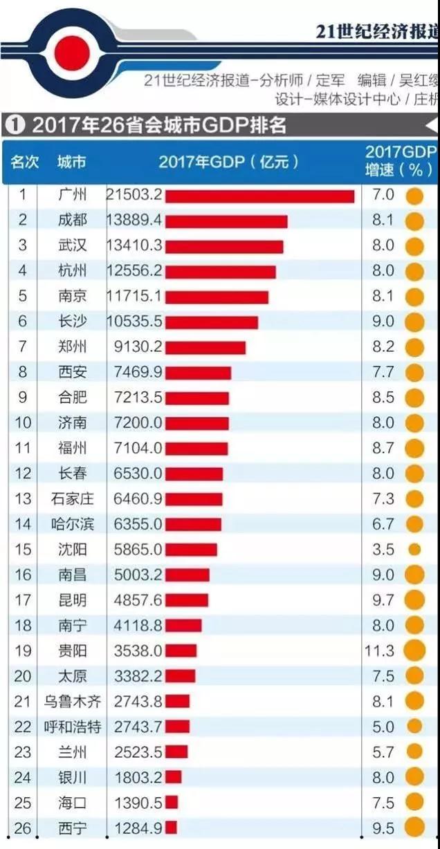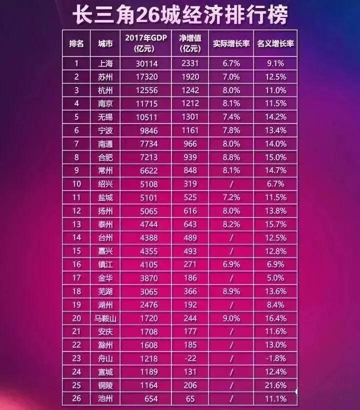 長三角地區26城的經濟排名中,合肥2017年GDP達到7213億元,排名第8。