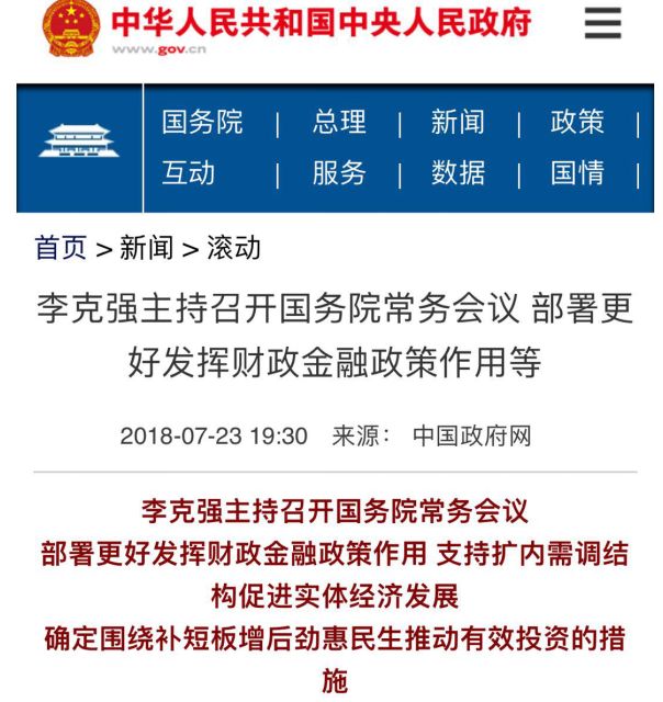 國務(wù)院總理李克強7月23日主持召開國務(wù)院常務(wù)會議,部署更好發(fā)揮財政金融政策作用,支持擴內(nèi)需調(diào)結(jié)構(gòu)促進實體經(jīng)濟發(fā)展;確定圍繞補短板、增后勁、惠民生推動有效投資的措施。