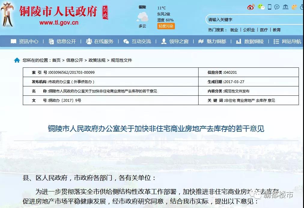 2017年3月27日,銅陵發(fā)布非住宅商業(yè)房地產(chǎn)去庫存新政。其中提出:激勵社會資本購買或租賃庫存非住宅商業(yè)房地產(chǎn),給予適度財政補貼。