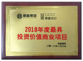2018年2月,鼎鑫中心項目榮獲2018年度最具投資價值商業項目